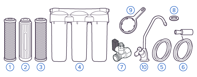 Финальный этап очистки воды: картриджи постфильтрации удаляют самые мелкие механические частицы и кондиционируют воду, придавая ей более приятный вкус.