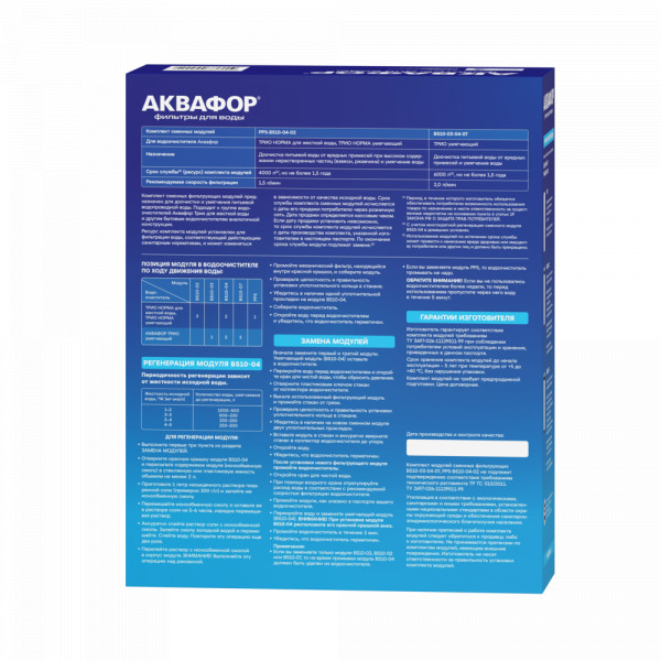 • Комплект сменных модулей глубокой очистки и умягчения воды низкой и средней жесткости. Эффективно снижает появление белого налета, модуль с ионообменной смолой подлежит регенерации. В зависимости от жесткости исходной воды, регенерацию потребуется проводить в срок до 3х месяцев.